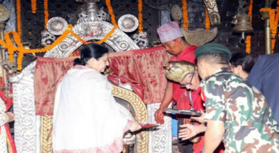 २७ असोज , काठमाडौँ । राष्ट्रपति विद्यादेवी भण्डारीले बुधबार काठमाडौँ उपत्यकाका शक्तिपीठहरूको दर्शन गर्ने भएकी