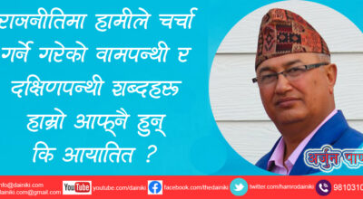 १६ असोज, काठमाडाैँ । आज हाम्रो राजनीतिको चल्तिका शब्द हुन बामपन्थी र दक्षिणपन्थी । देशमा