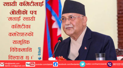 २१ मंसिर, काठमाडाैँ । सत्तारुढ नेपाल कम्युनिस्ट पार्टी (नेकपा)का अध्यक्ष तथा प्रधानमन्त्री केपी शर्मा ओलीले