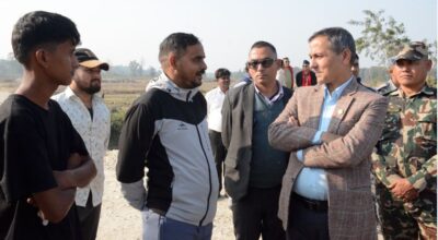 १५ मंसिर, महेन्द्रनगर । गृहमन्त्री ओमप्रकाश अर्यालयले आज दिउँसो कञ्चनपुरको दोधारा चादँनी सुक्खा बन्दरगाह निर्माणस्थलको