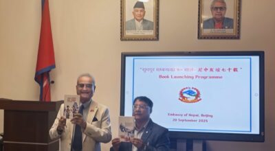 ५ असोज, काठमाडौँ । नेपाल चीन मिडिया फोरमद्वारा प्रकाशित सुमधुर सम्बन्धका ७० साल पुस्तक बेइजिङमा
