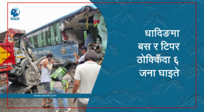 १ असोज, काठमाडौँ । धादिङमा बस र टिपर ठोक्किँदा ६ जना घाइते भएका छन । पृथ्वी
