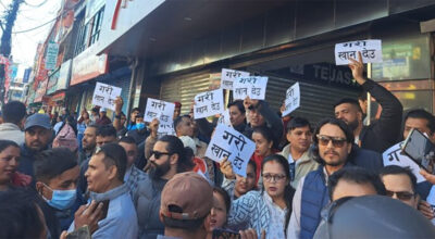 १४ मंसिर, काठमाडाैं । नेपाली कम्युनिष्ट पार्टी (नेकपा)ले पोखराको चिप्लेढुंगामा सभा राखेपछि स्थानीय व्यवसायीले विरोध प्रदर्शन