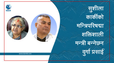 २६ भदौ, काठमाडौँ । पूर्व प्रधानन्यायाधीश सुशीला कार्की र मेडिकल व्यवसायी दुर्गा प्रसाईं सैनिक मुख्यालय