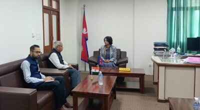 १२ मंसिर, काठमाडौँ । स्वास्थ्य तथा जनसङ्ख्यामन्त्री डा सुधा गौतमसँग नेपालका लागि भारतका राजदूत नवीन