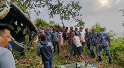 १७ भदौ, गोरखा । काठमाडौँबाट गोरखाको आरुघाट सोतीतर्फ आउँदै गरेको रात्रिबस दुर्घटना हुँदा २१ जना
