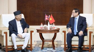 १५ भदौ, चीन । प्रधानमन्त्री केपी शर्मा ओली र समाजवादी गणतन्त्र भियतनामका प्रधानमन्त्री फाम मिन