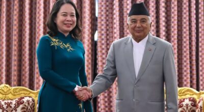 ९ भदौ, काठमाडौँ । राष्ट्रपति रामचन्द्र पौडेलसँग नेपाल भ्रमणमा रहनुभएकी समाजवादी गणतन्त्र भियतनामका उपराष्ट्रपति वो