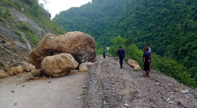 १९ साउन, नवलपरासी । बुटवल–नारायणगढ सडकखण्डअन्तर्गत दाउन्ने पहाडमा पहिरो खसेपछि राजमार्ग पूर्ण रूपमा अवरुद्ध भएको