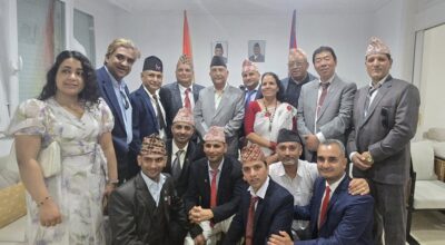१९ असार, स्पेन । प्रधानमन्त्री केपी शर्मा ओलीले स्पेनस्थित प्रवासी नेपाली मञ्चका पदाधिकारी र प्रतिनिधिसँग