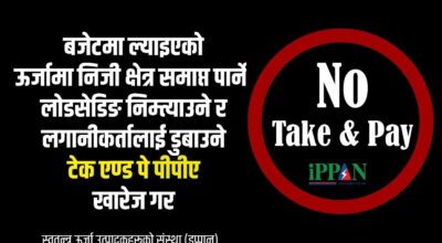 ८ असार, काठमाडौं । सरकारले बजेटमा ल्याएको विद्युत खरिदमा ‘टेक एण्डे पे’ (लिउ र तिर)