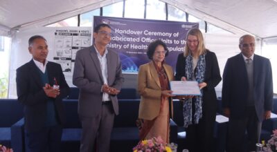 डब्लुएचओद्वारा निर्मित ‘प्रिफ्याब’ भवन स्वास्थ्य मन्त्रालयलाई हस्तान्तरण
