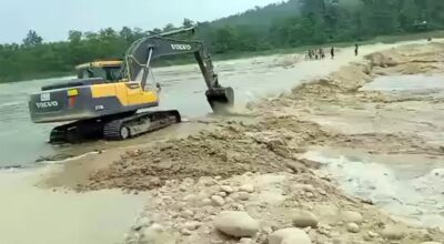 दुम्कीबासको डाइभर्सन बाढीले बग्दा पूर्वपश्चिम राजमार्ग अवरुद्ध