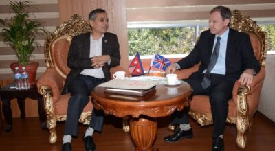 २८ कात्तिक, काठमाडौँ । गृहमन्त्री ओमप्रकाश अर्यालसँग नेपालका लागि बेलायती राजदूत रोब फेनले शिष्टाचार भेटवार्ता