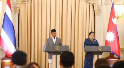 २० चैत, बैङ्कक । प्रधानमन्त्री केपी शर्मा ओलीले आफ्नो औपचारिक भ्रमणबाट नेपाल र थाइल्याण्डबीचको आपसी