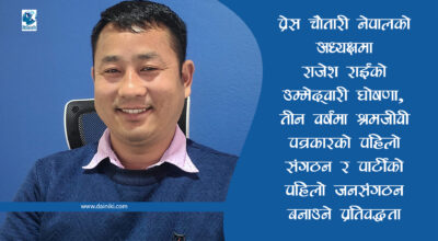 ८ चैत, काठमाडौँ । नेकपा एमालेको जनवर्गीय संगठन प्रेस चौतारी नेपालको अध्यक्षका उपाध्यक्ष राजेश राईले