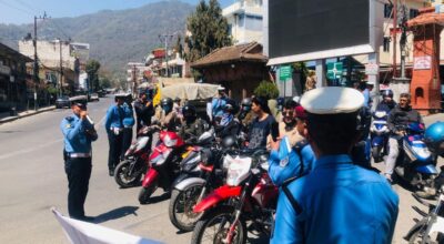 ७ चैत, काठमाडाैँ। ट्राफिक प्रहरीले बूढानीलकण्ठ नगरपालिका क्षेत्रमा ट्राफिक नियमबारे जनचेतना फैलाउने उद्देश्यले ‘दुईपाङ्ग्रे सवारी