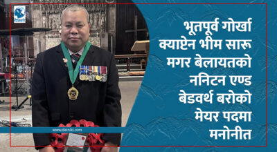 १४ फागुन, बेलायत । भूतपूर्व गोर्खा क्याप्टेन भीम सारू मगर बेलायतको ननिटन एण्ड बेडवर्थ बरोको