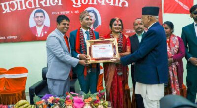 १३ फागुन, काठमाडौँ । अनेरास्ववियुका उपाध्यक्ष धर्मलाल गिरीले विवाहको नाममा विद्यालयलाई दान दिनुभएको छ ।