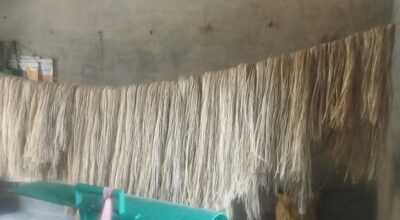 १३ फागुन, टीकापुर । कैलालीको कैलालीमा केराको थामबाट उत्पादित रेशा र त्यसबाट निर्माण गरिएका हाते
