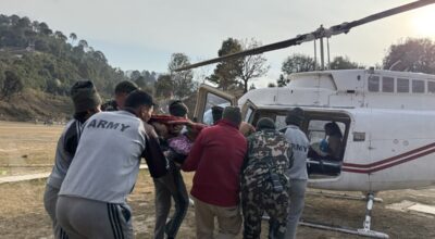 ११ फागुन, अछाम । अत्यधिक रक्तस्राव भएपछि अछामबाट एक सुत्केरीको हेलिकोप्टरमार्फत उद्धार गरिएको छ ।