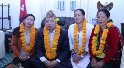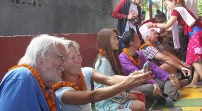 –जमुना वर्षा शर्मा २३ कात्तिक, कास्की । जर्मन नागरिक म्यारिक शिरमा ढाका टोपी र गलामा