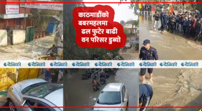 ३० माघ, काठमाडौँ । देशको राजधानी काठमाडौँको केन्द्रमा रहेको बबरमहलमा ढल फुटेर बाढी निस्कदाँ वन