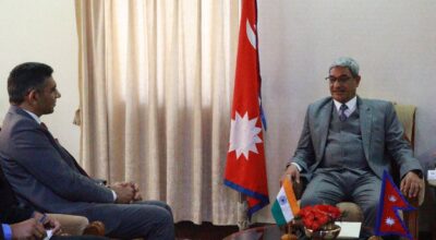 १५ माघ, काठमाडौँ । गृहमन्त्री रमेश लेखकसँग उहाँको कार्यकक्षमा भारतको विदेश मन्त्रालयका अतिरिक्त सचिव मुनु