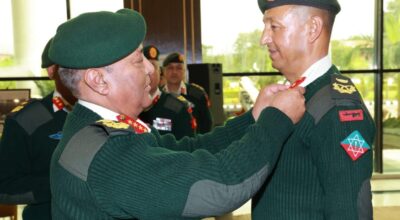 १६ कात्तिक, काठमाडौँ । प्रधान सेनापति अशोकराज सिग्देलले उपरथी दर्जामा पदोन्नति हुनुभएका सहायक रथी हिम्मतबहादुर