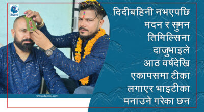 ६ कात्तिक, तनहुँ । तिहार दाजुभाइ र दिदीबहिनीको पर्व हो । यस पर्वमा दिदीबहिनीले दाजुभाइलाई