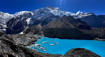 ५ कात्तिक, म्याग्दी । उत्तर, पूर्व र पश्चिम तीनतिर उभिएका हिमाल । हिउँ नहुँदा वरपर