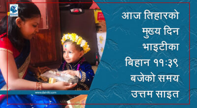 ६ कात्तिक, काठमाडौँ । यमपञ्चकसमेत भनिने तिहारको मुख्य दिन आज भाइटीका मनाइँदैछ । आज दिदीबहिनीले