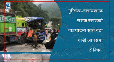 १ कात्तिक, चितवन । मुग्लिङ–नारायणगढ सडक खण्डको गाईघाटमा यात्रुबाहक बसले फरक लेनमा गएर ट्रकलाई ठक्कर दिँदा