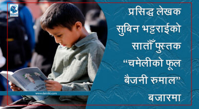 १ कात्तिक, काठमाडौँ । प्रसिद्ध लेखक सुविन भट्टराईको सातौँ पुस्तक “चमेलीको फूल बैजनी रुमाल” लोककार्पण