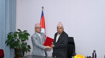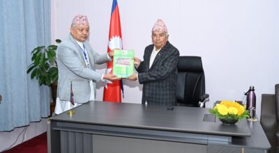 ३० असोज, काठमाडौँ । राष्ट्रपति रामचन्द्र पौडेलसमक्ष राष्ट्रिय प्राकृतिक स्रोत तथा वित्त आयोगको आर्थिक वर्ष