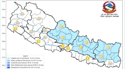 २४ असोज, काठमाडौँ । जल तथा मौसम विज्ञान विभागले आज लुम्बिनी, कर्णाली र सुदूरपश्चिम प्रदेशका
