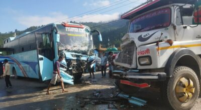२४ असोज, काठमाडौं । धादिङमा बस र टिपर ठोक्किदा ११ जना घाइते भएका छन् ।