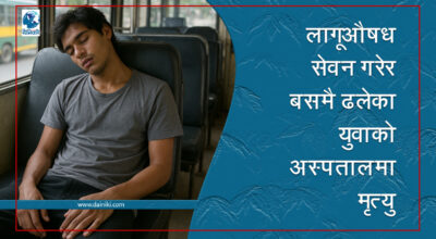 २१ असोज, नुवाकोट । लागूऔषध सेवन गरेर हिँडेका एक युवा बसमै ढलेका छन । विदुर