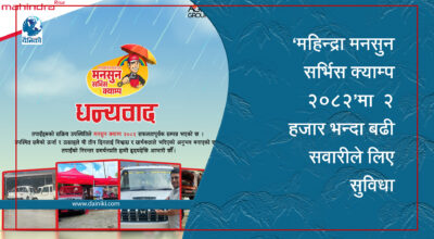 २० भाद्र, काठमाडौँ । अग्नि ग्रुपअन्तर्गत रहेको नेपालको लागि महिन्द्राको आधिकारिक सेवा केन्द्र बालाजु अटो
