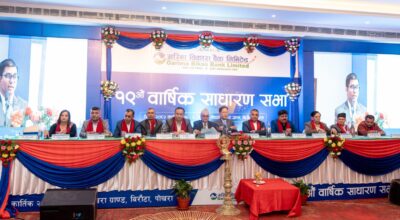२७ कात्तिक, काठमाडौं । गरिमा विकास बैंक लिमिटेडको उन्नाइसौं वार्षिक साधारणसभा सम्पन्न भएको छ ।