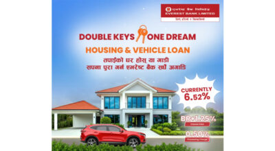 ३ भदाै, काठमाडौं । एभरेष्ट बैंकले ६.५२ प्रतिशतमै घर र सवारी कर्जा उपलब्ध गराउने भएको छ