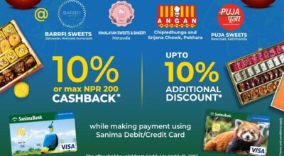 ३१ असाेज, काठमाडौं। तिहार तथा छट पर्वलाई लक्षित गरी सानिमा बैंक लिमिटेडले विभिन्न मर्चेन्टहरूमा क्यासब्याक तथा