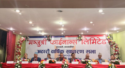 ३१ असाेज, काठमाडाैं। मन्जुश्री फाइनान्स लिमिटेडको अठारौं वार्षिक साधारण सभा सम्पन्न भएको छ । उक्त