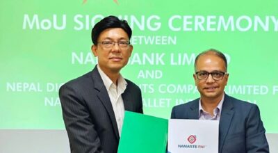 २२ साउन, काठमाडौँ । नबिल बैंकले नमस्ते पे वालेटसँग साझेदारी गरेको छ । एक कार्यक्रमकाबीच