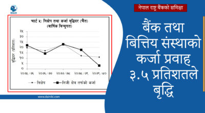 २७ वैशाख, काठमाडौं । चालु आर्थिक वर्षको ९ महिनामा बैंक तथा वित्तीय संस्थाहरुबाट निजी क्षेत्रमा जाने