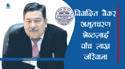 १० बैशाख, काठमाडाैँ । विवादित बैंकर अमृतचरण श्रेष्ठ राष्ट्र बैंकको कारबाहीमा परेका छन । श्रेष्ठले