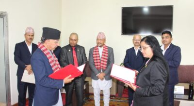 २७ चैत, काठमाडौं । सांग्रिला डेभलपमेन्ट बैंक लिमिटेडका अध्यक्ष उज्ज्वल सत्यालले पद तथा गोपनियताको शपथ ग्रहण