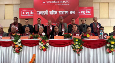 १४ पुस, काठमाडाैं । प्रभु बैंक लिमिटेडको २१ औँ साधारण सभा सम्पन्न भएकाे छ ।