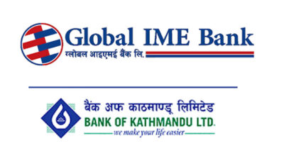 २७ कार्तिक, काठमाडाैं । ग्लोबल आइएमई बैंक र बैंक अफ काठमाण्डू समान हैसियत अर्थात् १ः१