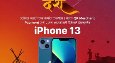 ग्लोबल स्मार्ट प्लसबाट क्यूआरमार्फत दशैंको किनमेल गर्दा आईफोन १३ जित्ने मौका